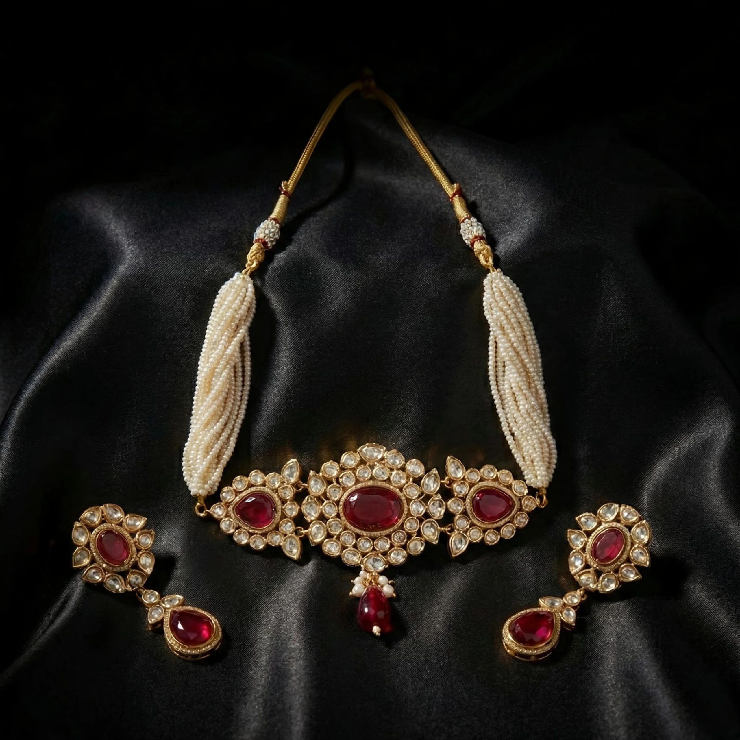 Red Polki & Beads Choker Set