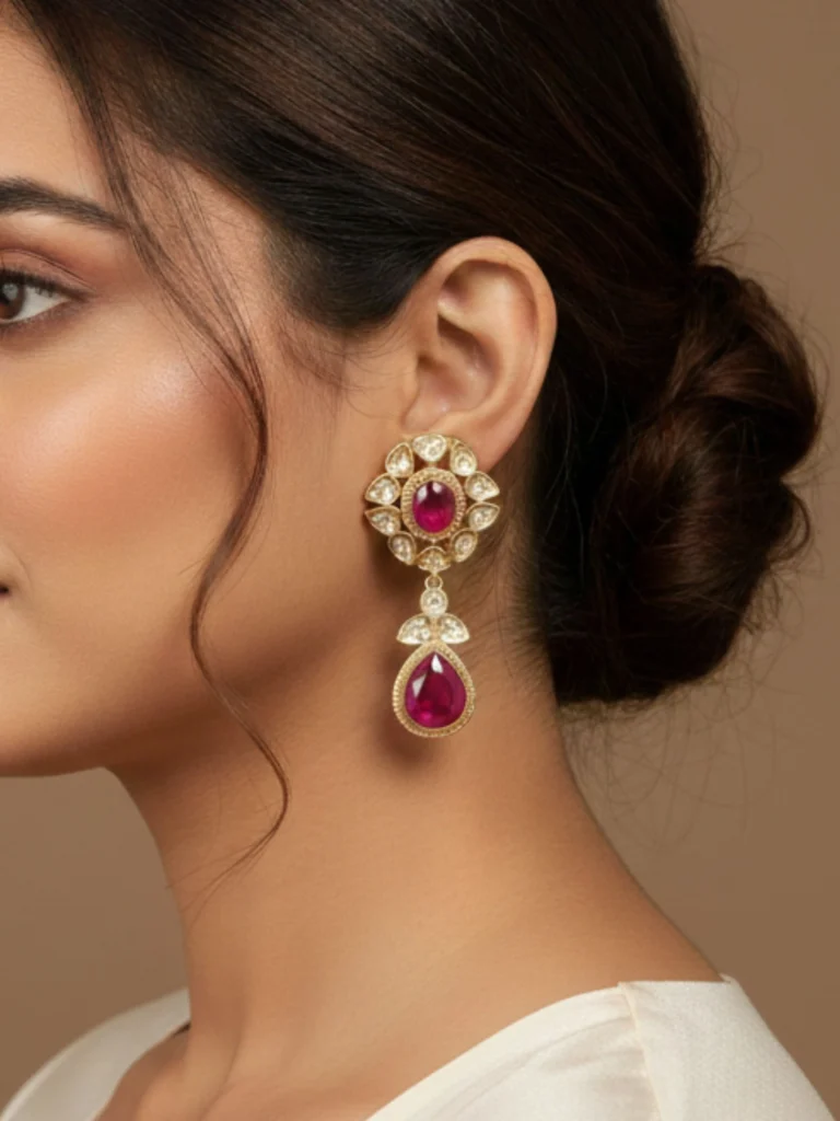 Elegant Moissanite Kundan Red Stone Danglers