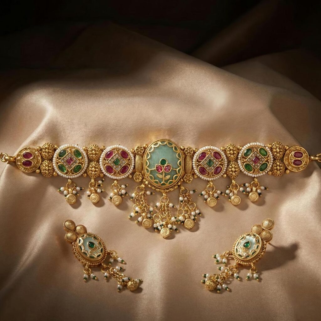 Rajwadi Stone & Pearl Bridal Choker Necklace Set