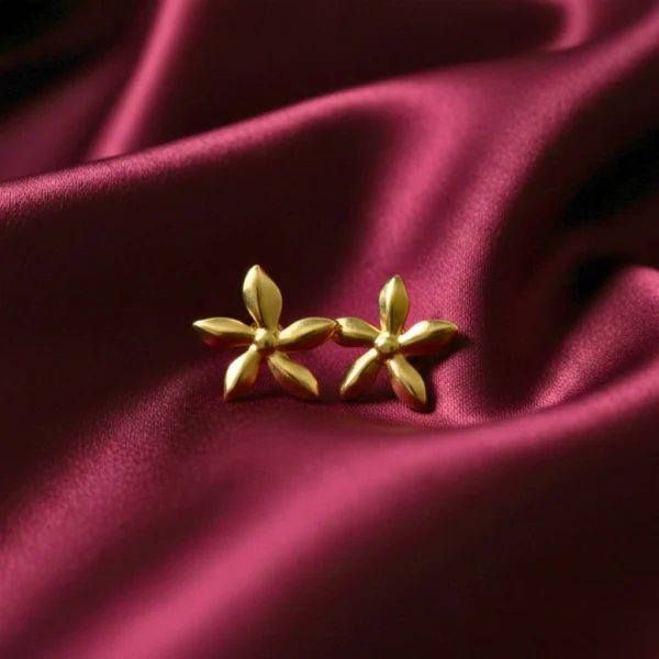 Add subtle charm to your everyday style with these gold finish flower design stud earrings, crafted for lightweight comfort and effortless elegance. Set in gold plated stainless steel. Secure push-back closure for easy and comfortable fit, ensures stability and convenience for stud, hoop, dangler earrings.