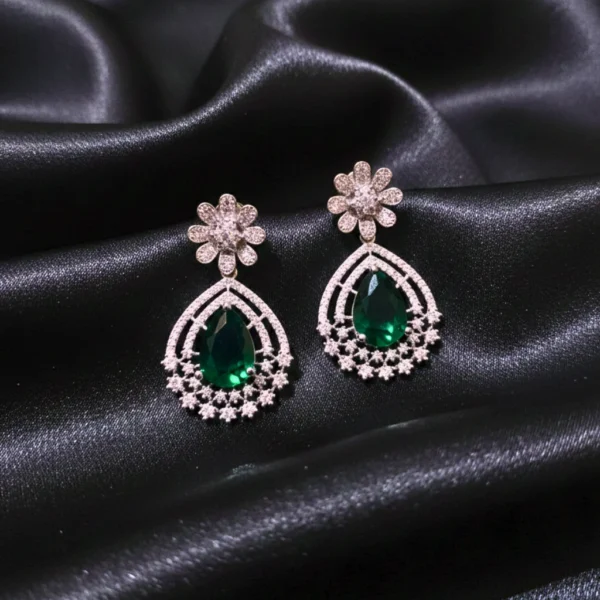 Green Stone AD Studded Dangler Earrings