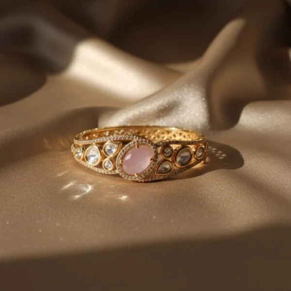 Kundan with Cubic Zircon Studded Pink Stone Openable Kada
