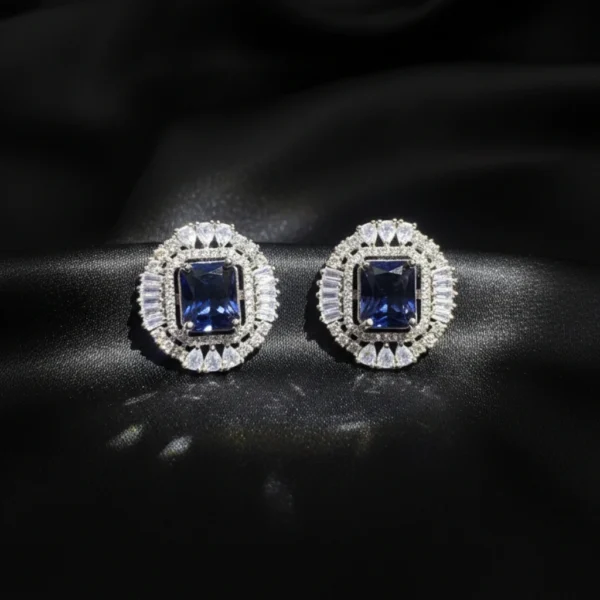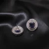 Add elegant sparkle to your everyday style with these rhodium finish purple stone AD stud earrings, designed for lightweight comfort and timeless beauty. Set in rhodium finish brass metal with purple synthetic stone and American diamond studded. Perfect for parties and special occasion. Secure push-back closure for easy and comfortable fit, ensures stability and convenience for stud, hoop, dangler earrings.