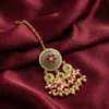 Add timeless elegance to your bridal look with this beautifully crafted jewellery set featuring intricate stone detailing and delicate pearl accents. Complete with matching earrings and a coordinated maang tikka, this gold finish set is perfect for weddings, receptions, and festive occasions. A graceful blend of traditional charm and modern style for your special moments. The necklace features an adjustable drawstring closure, the earrings come with secure push-back fastenings, and the maang tikka is fitted with an S-hook for a comfortable and secure fit.