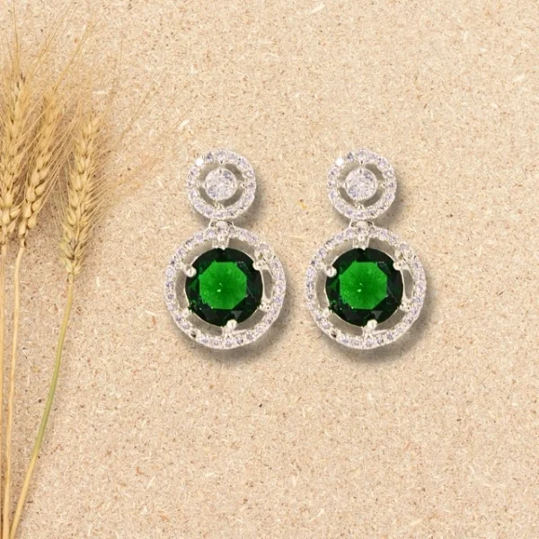Rhodium-Plated AD Green Onyx Stone Dangler Earrings