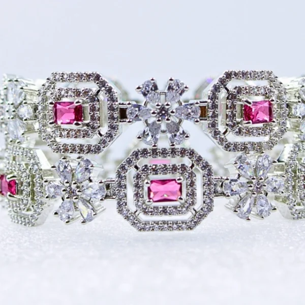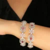 Be the first to review “Rhodium Plated Red Onyx Stone Zircon Slide Bangles, Set of 2”
