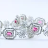 Rhodium Plated Red Onyx Stone Zircon Slide Bangles, Set of 2
